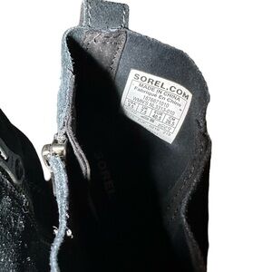 Women's STUNNING black suede waterproof booties by Sorel. Gently Used please see photos