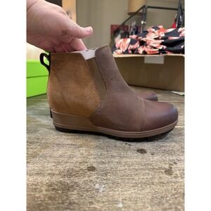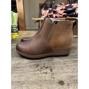 Sorel Women's Evie Leather Wedge Ankle Boot Suede Leather Brown Tan Size 7.5