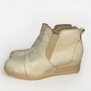 Sorel Womens Evie Tan Leather Waterproof Pull On Wedge Ankle Booties Size 8 VGC