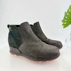 Sorel Women's Evie Boot Size 8.5 Hidden Wedge Heel Bootie Black Suede Pull on