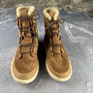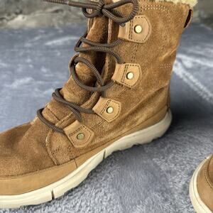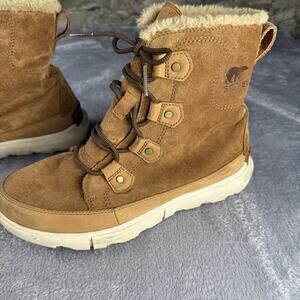 Sorel Women's Explorer II Joan Faux Fur Waterproof Boot Velvet Tan, Fawn, US 9.5. Condition is Pre-owned. Shipped with USPS Ground Advantage.