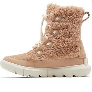 Sorel Women's Explorer Joan Cozy Leather Lace up Ankle Boot, Canoe Chalk Size 7M