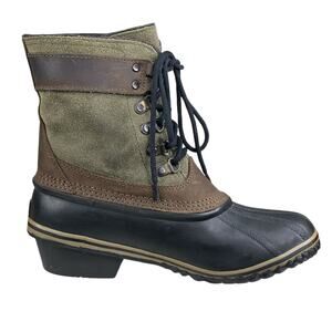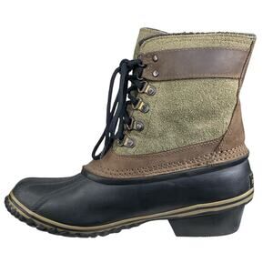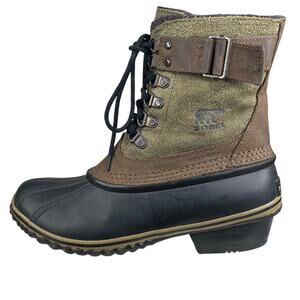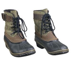 Sorel Women's Fancy Lace Green Brown Waterproof Snow Boot Size US 7.5
