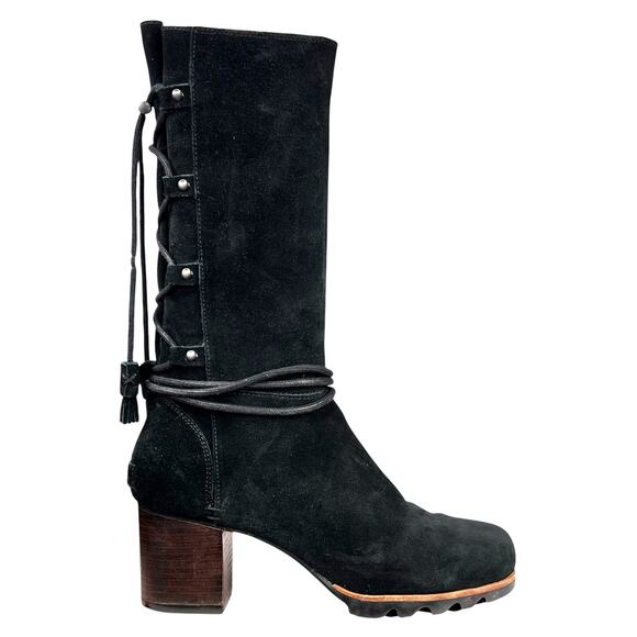 Sorel Women’s Farah Black Suede Mid Calf Heeled Boot Size US 9