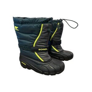Sorel Women's Flurry Winter Snow Boots Size 6 Black Green Insulated Waterproof
