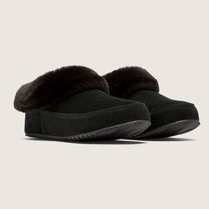 Sorel Women’s Go Coffee Run Slippers Black Suede Leather Fur Slip On Shoes Nwt