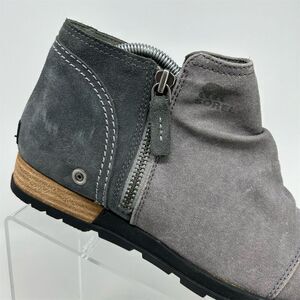 Sorel Women's Gray Leather Major Low Ankle Boots Size 10.5 Zip Closure Round Toe