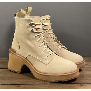 Sorel Women's Hi Line Heeled Lace Up Waterproof Boots Size 8 Taupe Suede