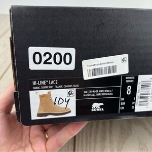 new in box, Sorel Women's Hi-Line Lace Boot, size: US8 women's, color: Canoe / Tawny Buff, MSRP $185.