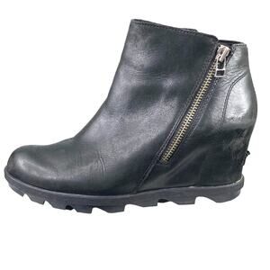 Sorel Women's Joan Of Arctic III Black Leather Hidden Wedge Boot Size US 9.5