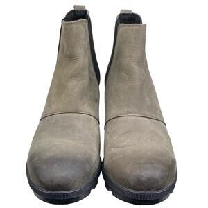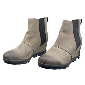 Sorel Women's Joan Of Arctic Olive Leather Hidden Wedge Chelsea Boots Size 9.5