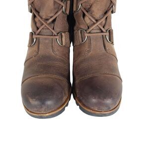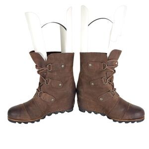 Sorel Women's Joan of Arctic US 8,5 Brown Leather Lace Up Wedge Mid-Calf Boots