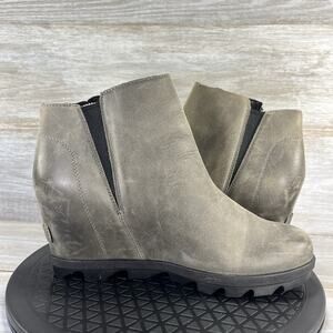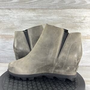 Sorel Women's Joan of Arctic Wedge II Zip Up Gray Leather Boots Size 9