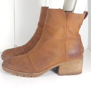 Sorel Women's Kate US 9 Brown Leather Waterproof Side Zip Ankle Boots Booties .