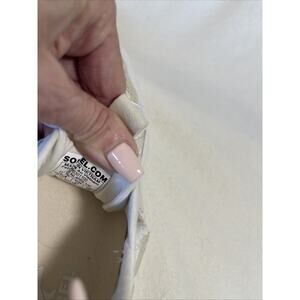 The Sorel Women's Kinetic Breakthru Tech Sneaker in size 6 is a white athletic platform shoe perfect for outdoor activities and sports. With a low top style and lace-up closure, these sneakers offer a comfortable fit for women who enjoy walking and other active pursuits. The rubber outsole provides traction, while the synthetic upper material ensures durability. Whether you're hitting the trails or just running errands, these Sorel sneakers combine style and functionality for a versatile option in any season. Excellent CONDITION