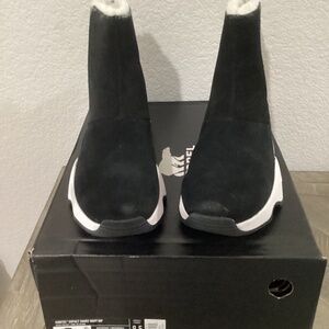 Upper: suede; lining: polyester microfleece faux fur; sole: rubber