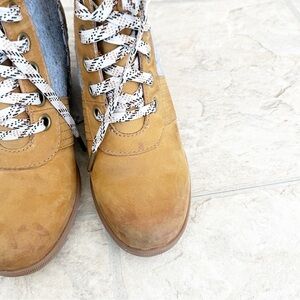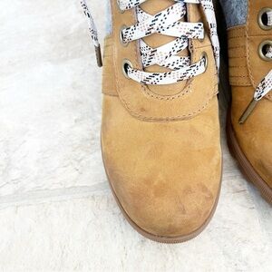 Sorel Womens Lace Up Lexie Wedge Bootie Boots Camel Brown Leather Size 7.5