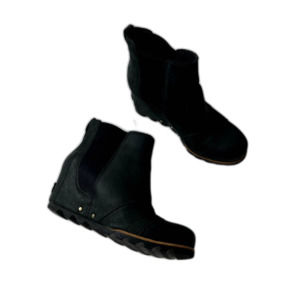 Sorel Womens Lea Wedge Pull-on 2 Casual Boot Black/Quarry Ankle Booties Leather Size US 8 Solid Career Casual Spring Winter Fall Closed-toe Elastic-ankle Stretchy