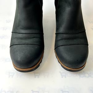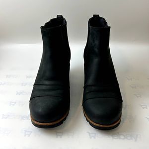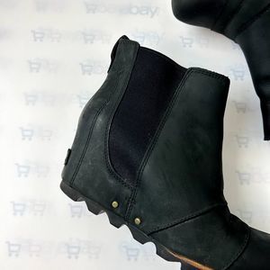Sorel Womens Lea Wedge 2 Casual Boot Black/Quarry Ankle Booties Leather Size 8