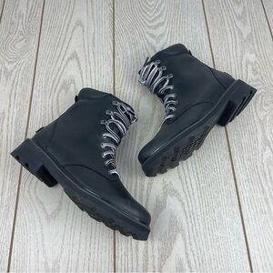 new in box, Sorel Women's Lennox Leather Lace-Up STKD Boots, size: US8.5 women’s, color: Black / Sea Salt (white), MSRP $190.