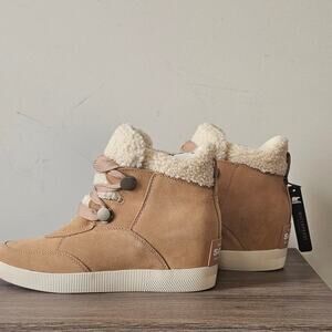 Sorel Women's ONA Cozy Wedge Boots Size 8.5 Tawny Buff/Sea Salt 2048681 NEW