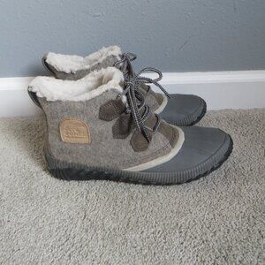 Sorel Womens Out N About Plus Snow/Rain Ankle Booties Size 7.5 Gray #NL3150-257