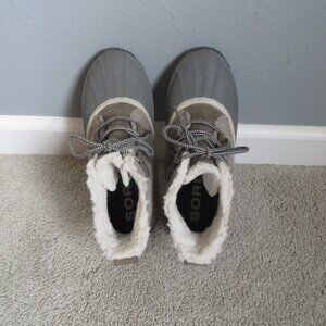 Sorel Womens Out N About Plus Snow/Rain Ankle Booties Size 7.5 Gray/Olive Green #NL3150-257