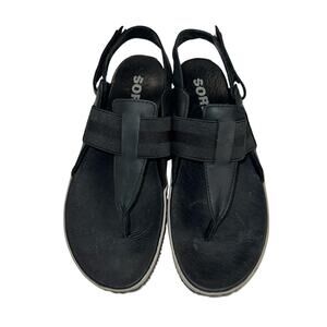 Sorel Women's Out N About Plus Thong Sandals with Ankle Strap Black Size 8