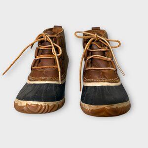 Sorel Women's Out n About Duck Boots - size 6 - Classic Oiled Leather in brown - very good, gently used condition. Light wear to upper and sole.