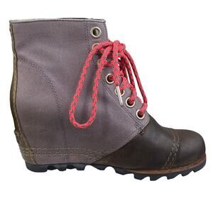 Sorel Women's PDX Grey Brown Hidden Wedge Bootie Size US 6.5