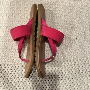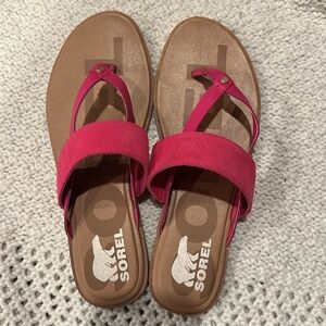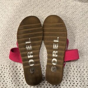 Step out in style with these chic pink sandals from Sorel. Perfect for any casual outing.