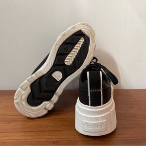 Sorel women’s waterproof platform oxford style shoes. Black upper with white chunky sole. Perfect for everyday wear. Worn once.