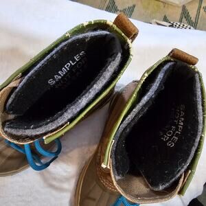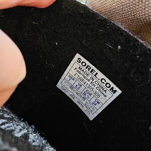 Noting that the size says 7 but should fit more like a 7.5 based on Sorel's own sizing chart. These honestly are Unisex. Mens fit closer to 6.5. But should account for warm socks since these are snow boots! Great condition shoes, but they do have stamping inside pictured "sample not for resale" - does not affect quality of boot. Brown/Tan shoes with teal laces