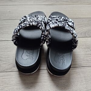 Sorel Women's Roaming Two Strap Slide Flat Sandal. Women's size 7.5. Preowned in good condition. An elegant two-strap slide with buttery soft full grain leather straps.