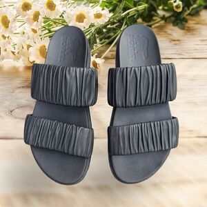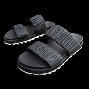 Sorel Women's Roaming Two Strap Slides Black Size 7.5 Leather Sandals