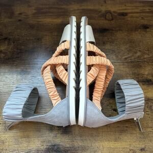 Sorel Womens Shoes 6 1/2 Gray And Orange Ella II Ankle Strap Sandal Back Zip