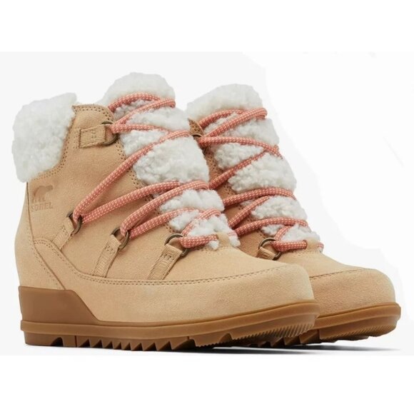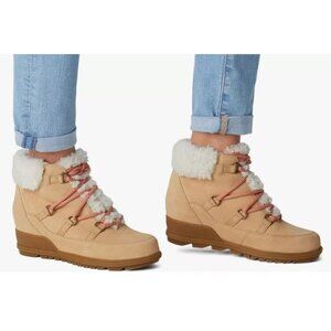 Sorel Womens Size 8 Evie Cozy Lace-Up Wedge Tawny Buff Suede Waterproof Boots