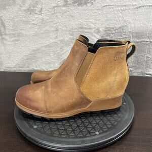 Sorel Womens Size 9 Evie Wedge Bootie Pull On Suede Leather Tan Ankle Boots