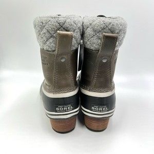 Sorel women's Slimpack Lace II winter snow boots. Colorway is Quarry / Black. Women's size 7.