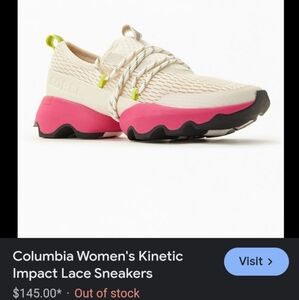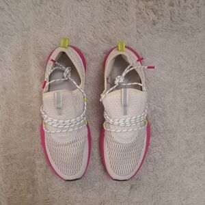 Stylish Sorel sneakers. White upper with pink accents. Comfortable and trendy.