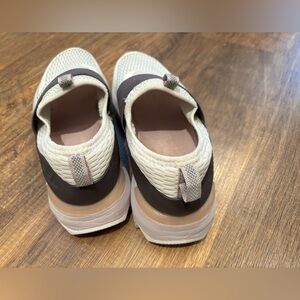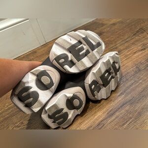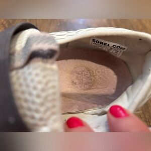 Stylish Sorel sneakers. White mesh upper. Gray elastic strap. Comfortable and modern design.