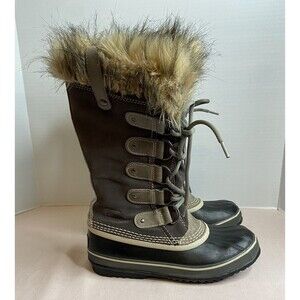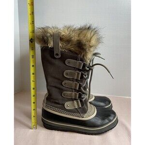 Sorel Womens Suede Faux Fur Trim Joan Of Arctic Snow Boots Brown Size 8