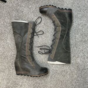Sorel Womens Tall Cate the Great Wedge Boots Size 10 Heeled Leather Charcoal