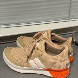 Pre loved , worn once or twice last winter. Comfortable Sorel shoes in tan. Perfect for everyday wear. Perfect for the outdoor rainy, winter days when you need a comfortable sneaker.