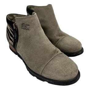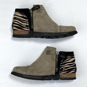 Sorel | Women's Tan Major Suede Zebra Print Ankle Zip Booties | 8
