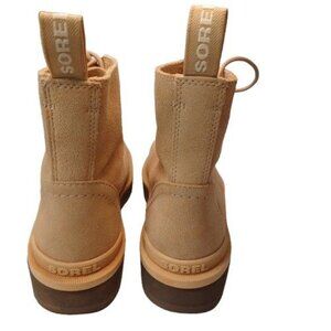 Sorel Womens Tan Soft Size 6.5 Lace-Up Combat Boots Pull Tabs Rubber Sole Casual