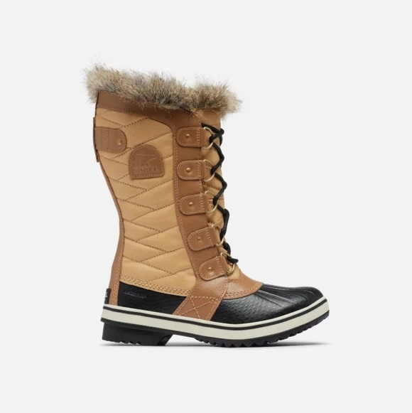 Stay warm and stylish with these women's winter boots. Featuring a cozy fur lining and durable construction, these tan and black boots are perfect for cold weather adventures.