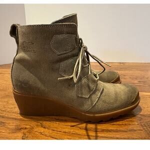 Sorel Women's Toronto Suede Lace Up Wedge Bootie Taupe Size 7 Street Style