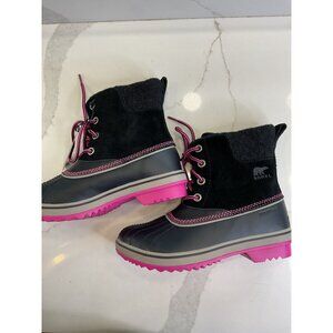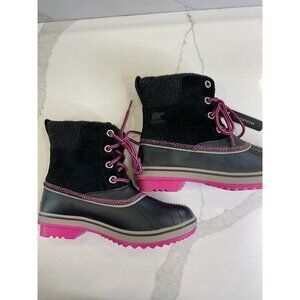 Sorel Women's Winter Carnival Boots Black/Fuchsia Size 8 Waterproof Insulated Sn