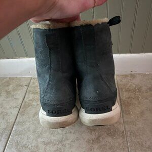 very gently used, great condition. Great winter boots, slip on for outdoors, waterproof suede-like material with fur around collar. Like new
